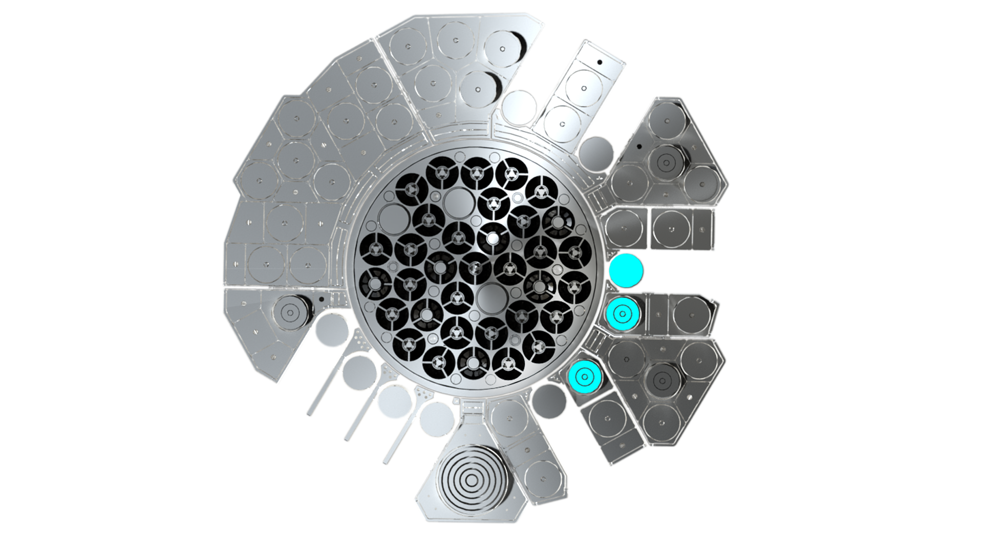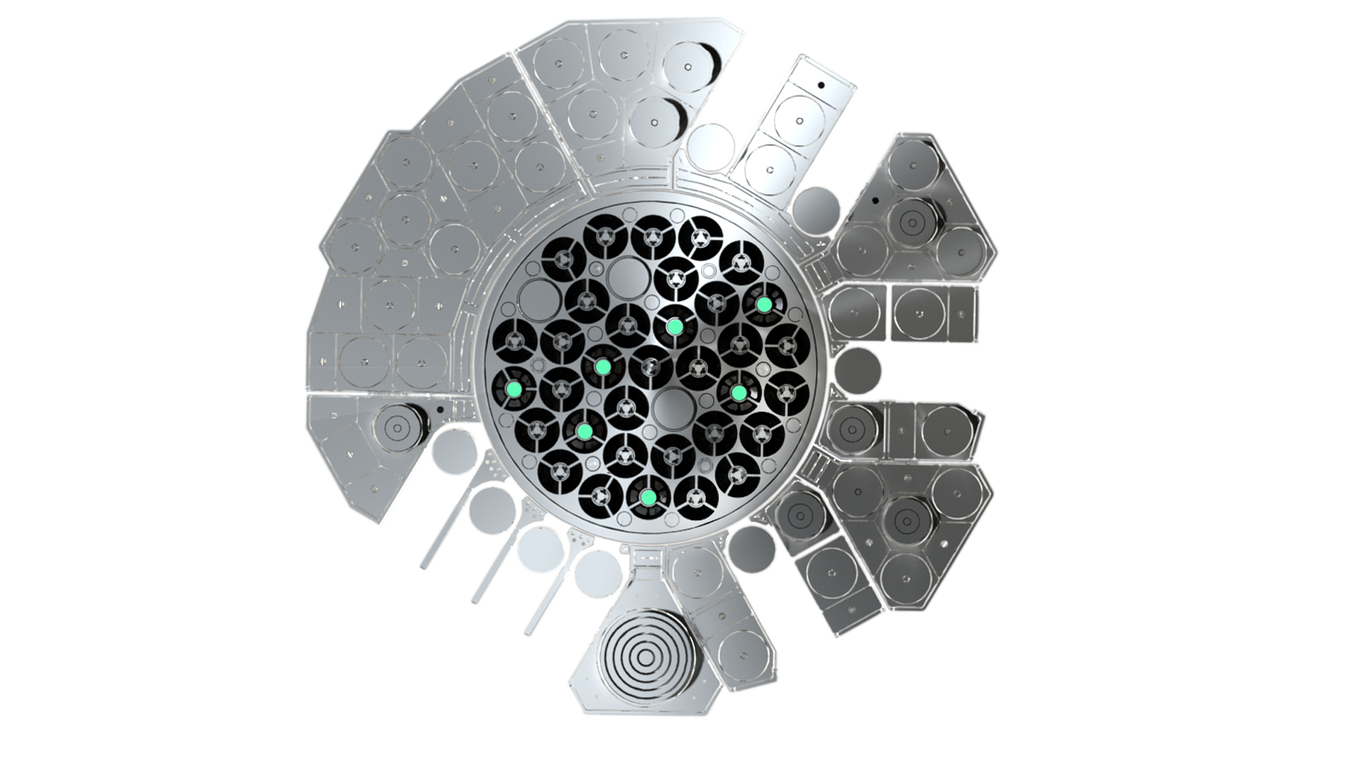 Plusieurs types d’échantillons (fluage, traction, Charpy et microstructure) peuvent être irradiés si leur taille ne dépasse pas 30 x 62,5 mm². Les échantillons peuvent être empilés les uns sur les autres sur une hauteur de 60 cm (figure jointe) avec un gradient axial de dommage dû aux variations du flux de neutrons rapides. Entre chaque cycle, le porte-échantillons subit une rotation de 180º dans le dispositif de manière à homogénéiser les dommages dans les échantillons expérimentaux.